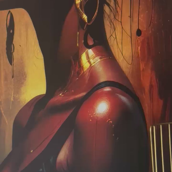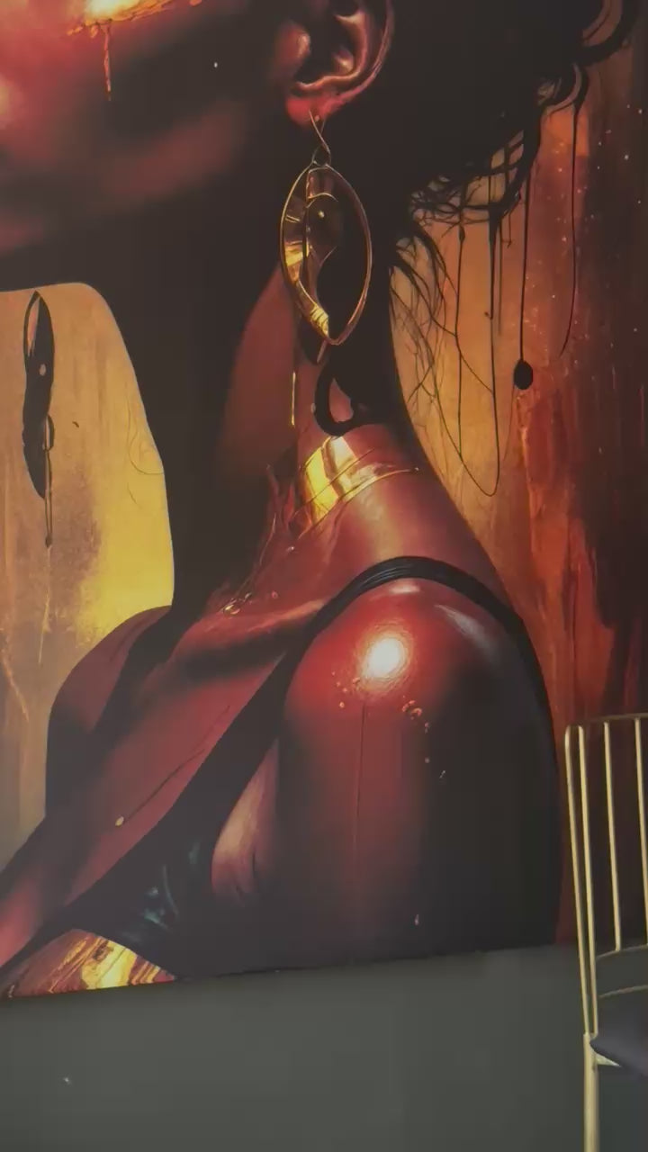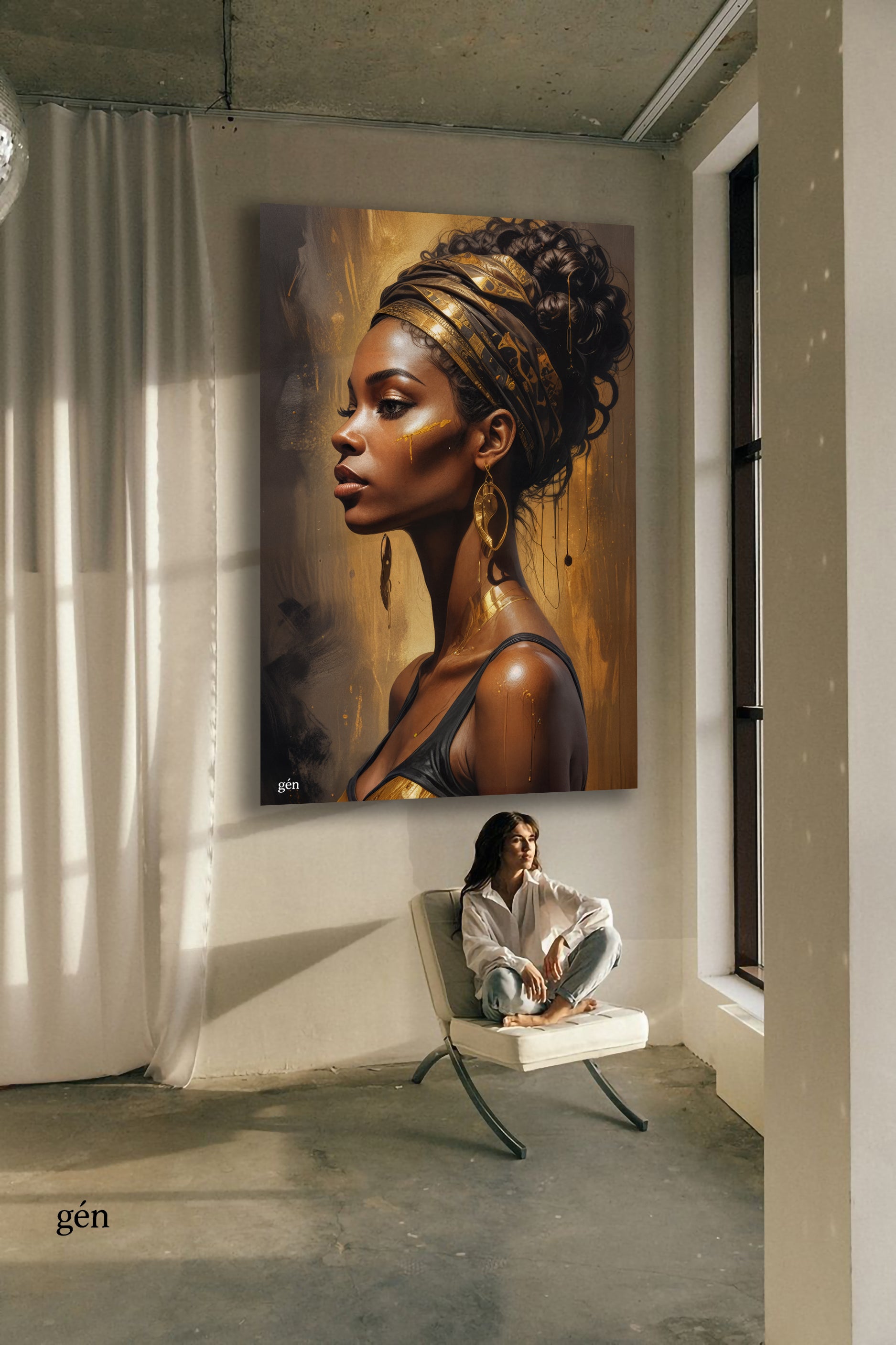 Bring elegance and strength into your space with Golden Grace, a striking digital painting of an African woman adorned in golden tones. This large luxury wall art combines deep earthy shades with luminous metallic highlights, creating a powerful yet graceful presence. Printed on high-quality flex, it’s perfect for living rooms, dining areas, or statement walls, adding both modern sophistication and cultural richness to your décor.